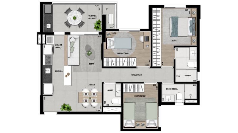 O conforto de uma casa com a praticidade de um apartamento. Unidade Tipo 1: com 3 dormitórios sendo 1 suíte e 1 banheiro social e 1 lavabo.
